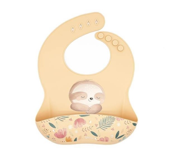 Wybierz śliniak SASSI Leniwiec i pozwól, by codzienne posiłki były spokojne, czyste i pełne uśmiechu.