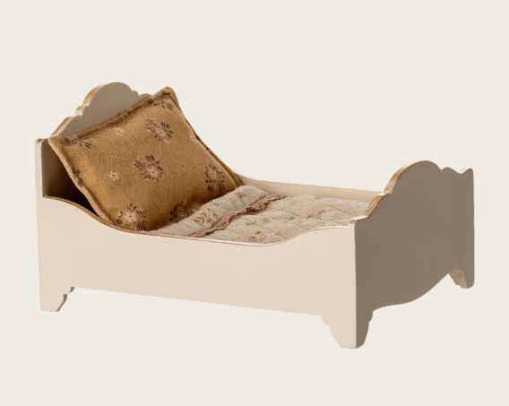 Drewniane łóżko dla Myszek Maileg - Off white to stylowy element kolekcji, który wprowadza do zabawy elegancję. Dzięki jasnemu odcieniowi i prostym liniom doskonale pasuje do każdego mini pokoju w domku Maileg.