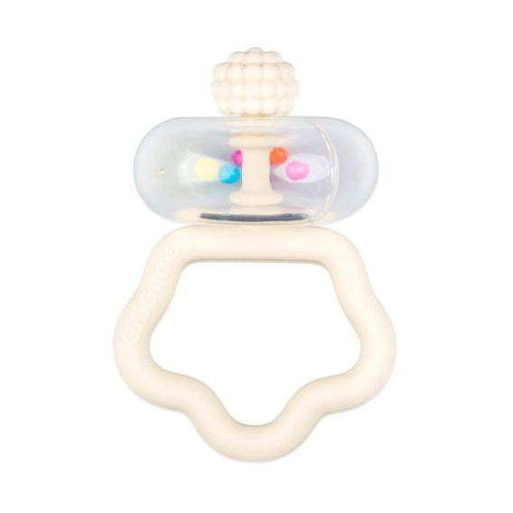 Grzechotka GiliGums dysk horyzontalny to prosta zabawka dla niemowląt, stworzona z myślą o pierwszych aktywnościach manualnych. Płaski kształt dysku sprawia, że dziecko może łatwo chwytać grzechotkę i obracać ją w dłoniach.