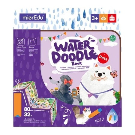 Kolorowanka w formie rozkładanej książeczki, gdzie odkrywamy kolor i przedmioty za pomocą magicznego pędzelka z wodą. Dodatkowo po pokazaniu się obrazka możemy odszukać zwierzęta po kształcie. Po wyschnięciu kartek, zabawa zaczyna się od nowa.
