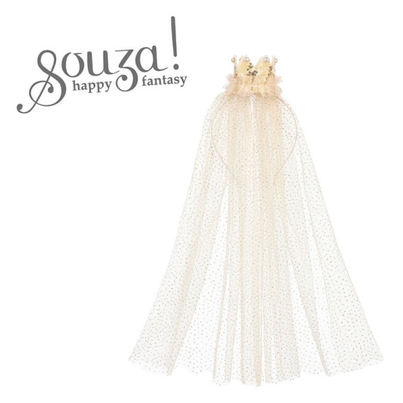 Opaska tiara Souza! z tiulowym welonem i złotą mini koroną Chava to efektowny dodatek, który od razu zmienia każdą stylizację w królewską kreację. Złota mini korona połączona z lekkim, tiulowym welonem sprawia, że opaska pięknie prezentuje się podczas zabawy i dziecięcych uroczystości.