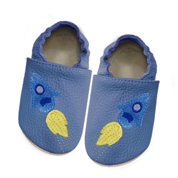 Paputki skórzane z kauczukową podeszwą - Rakieta - niebieskie z niebieską aplikacją